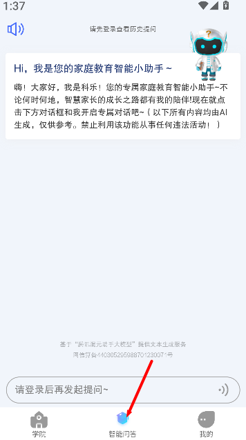 3、问答互动功能,输入教育相关问题,可获取系统推荐答案或专家解答内容。