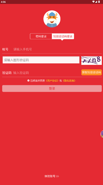 1、在选择短信验证码登录方式,输入手机号与图形验证码后获取短信验证码并登录。