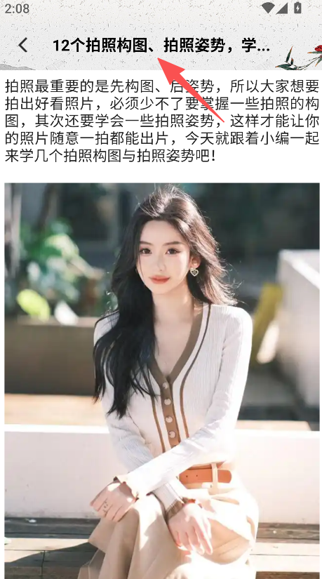 3、浏览拍照构图、姿势技巧内容,学习旅行拍照方法。