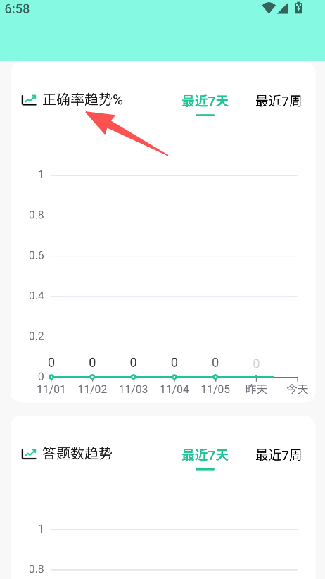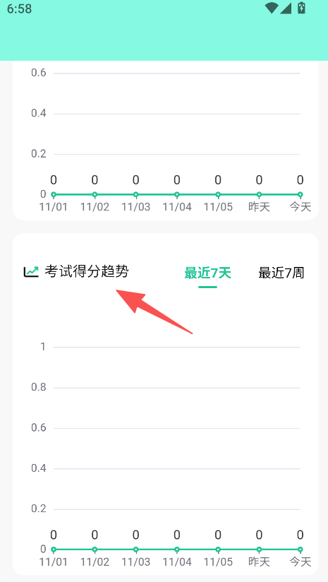 1、查看考试得分趋势,了解最近7天或7周的得分变化。
