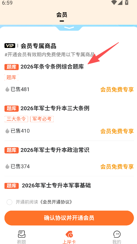 3、开通会员,使用2026年条令条例综合题库等专属资源。
