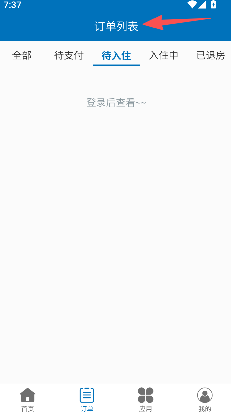 3、进入订单列表,查看待入住、入住中等订单状态。