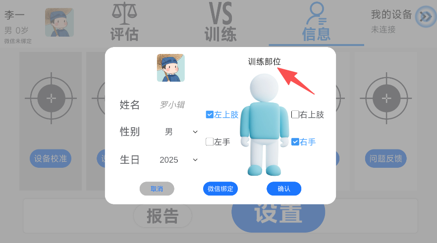 1、新增用户操作简便,训练部位可精准到具体肢体,适配各类健康训练的部位要求,让用户管理更具针对性。