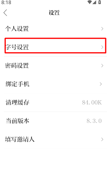 2、在系统设置页面中,点击“字号设置”,进入字体大小调整界面。