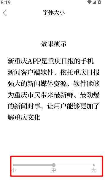 3、根据阅读习惯选择合适的字体大小,设置完成后新闻内容将以所选字号显示。