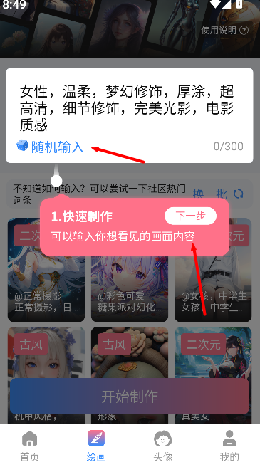 3、包含画廊浏览区,可查看历史作品并进行二次创作与调整。