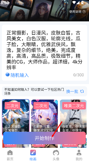 3、确认内容后点击“开始制作”,系统将自动生成对应的画作并展示结果。