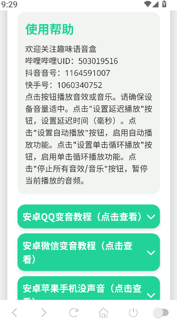 1、打开软件后,进入首页可查看音效区域,浏览不同类型的语音内容。