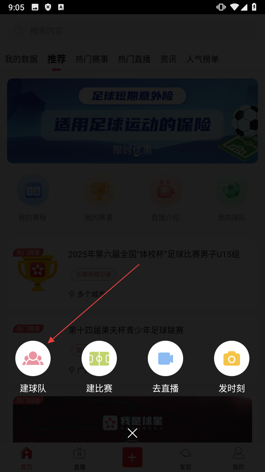3、在页面中,点击【创建球队】,进入球队信息填写页面。