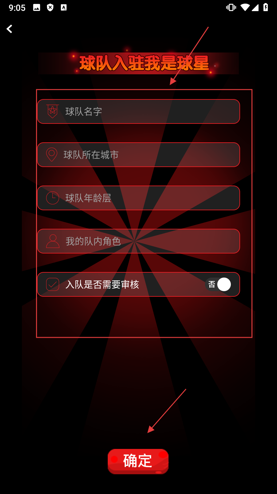 4、在页面中【填写球队信息】后点击【确定】,即可完成球队创建操作。