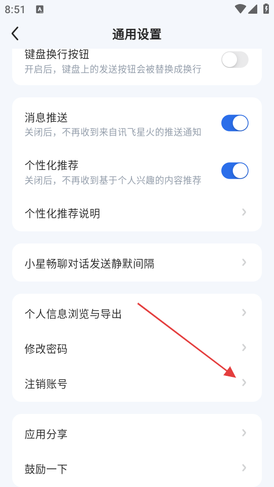 4、在通用设置页面中,找到【注销账号】选项并点击,即可进入账号注销流程。