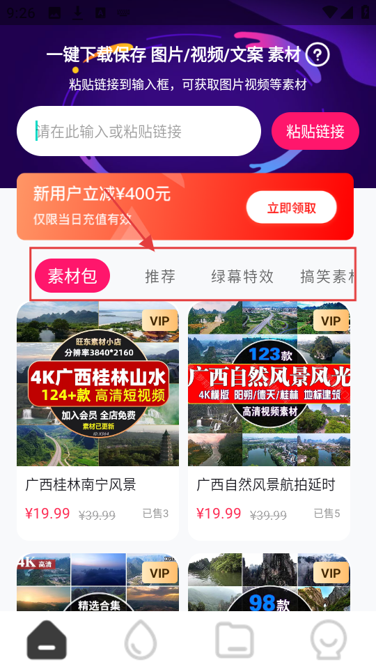 2、登录后,在软件主界面,点击【素材包】,可浏览各类素材包,选择感兴趣的素材包查看哦。