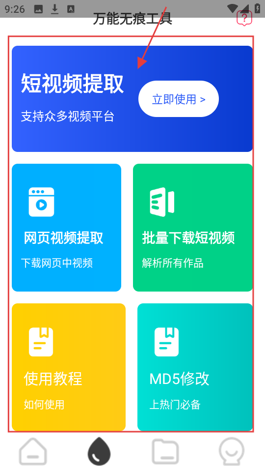 4、在万能无痕工具页面,点击【短视频提取】,可使用短视频提取功能,支持众多视频平台哦。