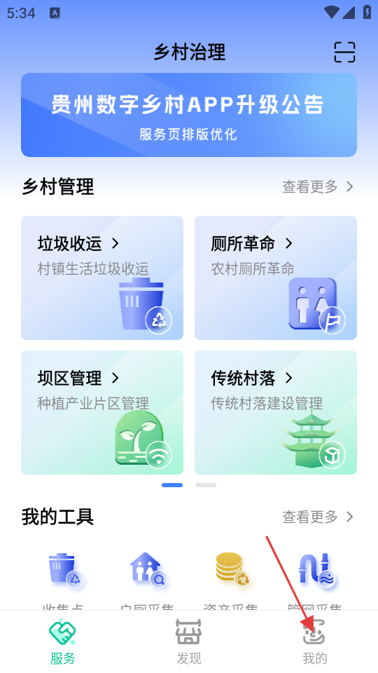 1、在APP的服务页面点击右下角【我的】,进入个人页面。