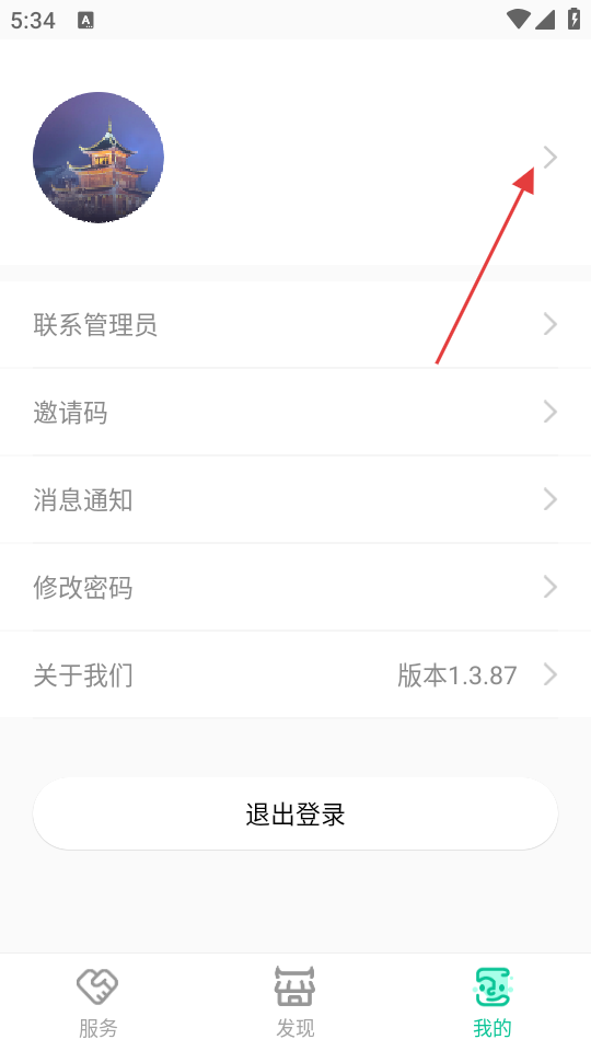 2、在【我的】页面中,点击头像右侧的箭头,进入个人信息页面。