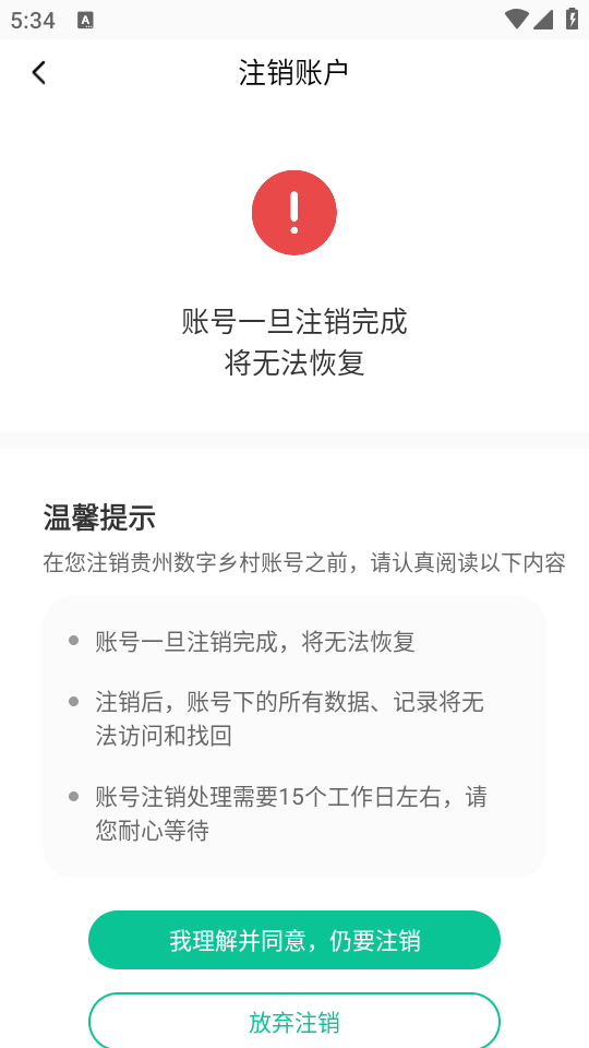 4、在注销账户页面,仔细阅读温馨提示后,点击【我理解并同意,仍要注销】即可发起账号注销流程。