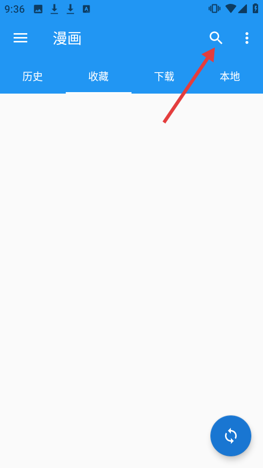 1、在Cimoc漫画界面,点击右上角【搜索】图标,进入搜索页面。
