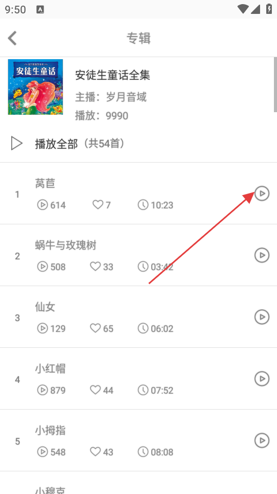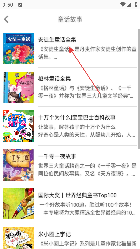 2、在童话故事列表中,选择【安徒生童话全集】,进入该专辑页面。