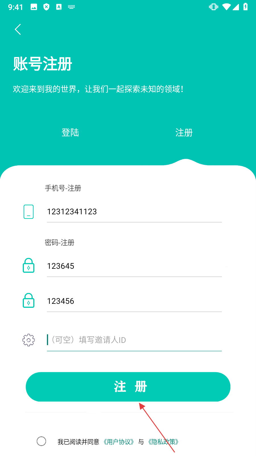 4、信息填写完成后,点击【注册】,即可完成账号注册操作。