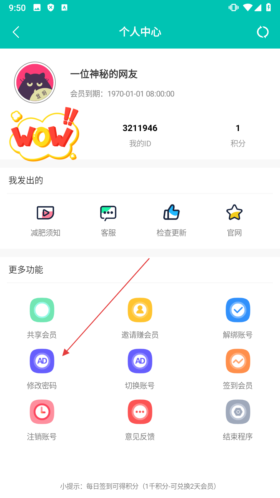2、在页面中,点击【修改密码】,进入修改密码页面。
