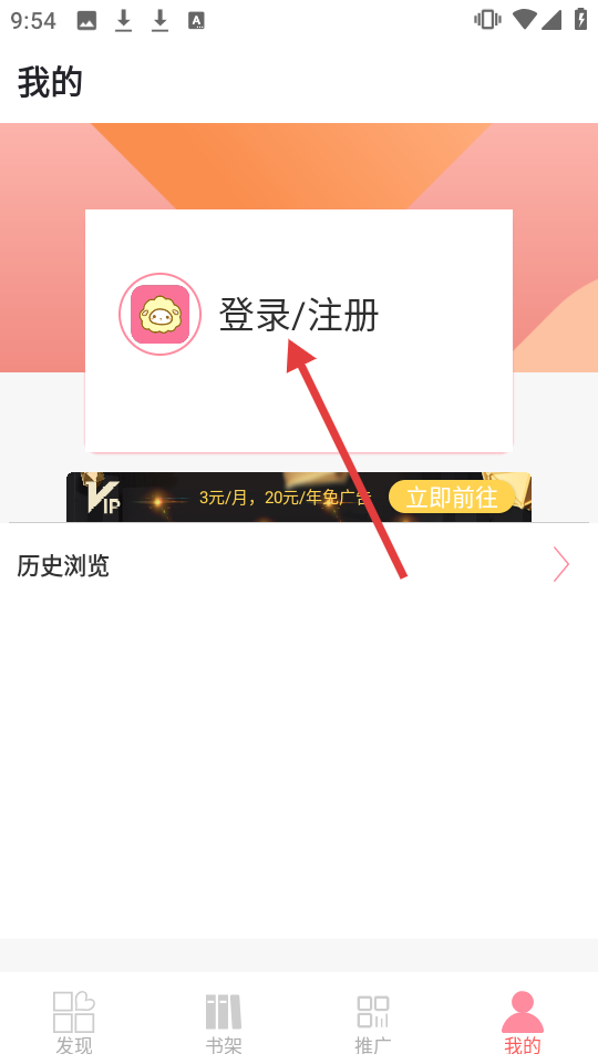 2、在个人页面,点击【登录/注册】进入登录注册界面。