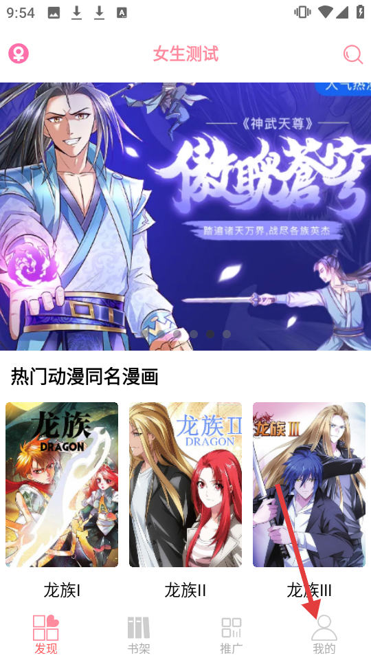 1、在漫画应用界面,点击右下角【我的】进入个人页面。
