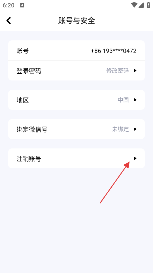 3、在账号与安全页面中,找到【注销账号】选项并点击。