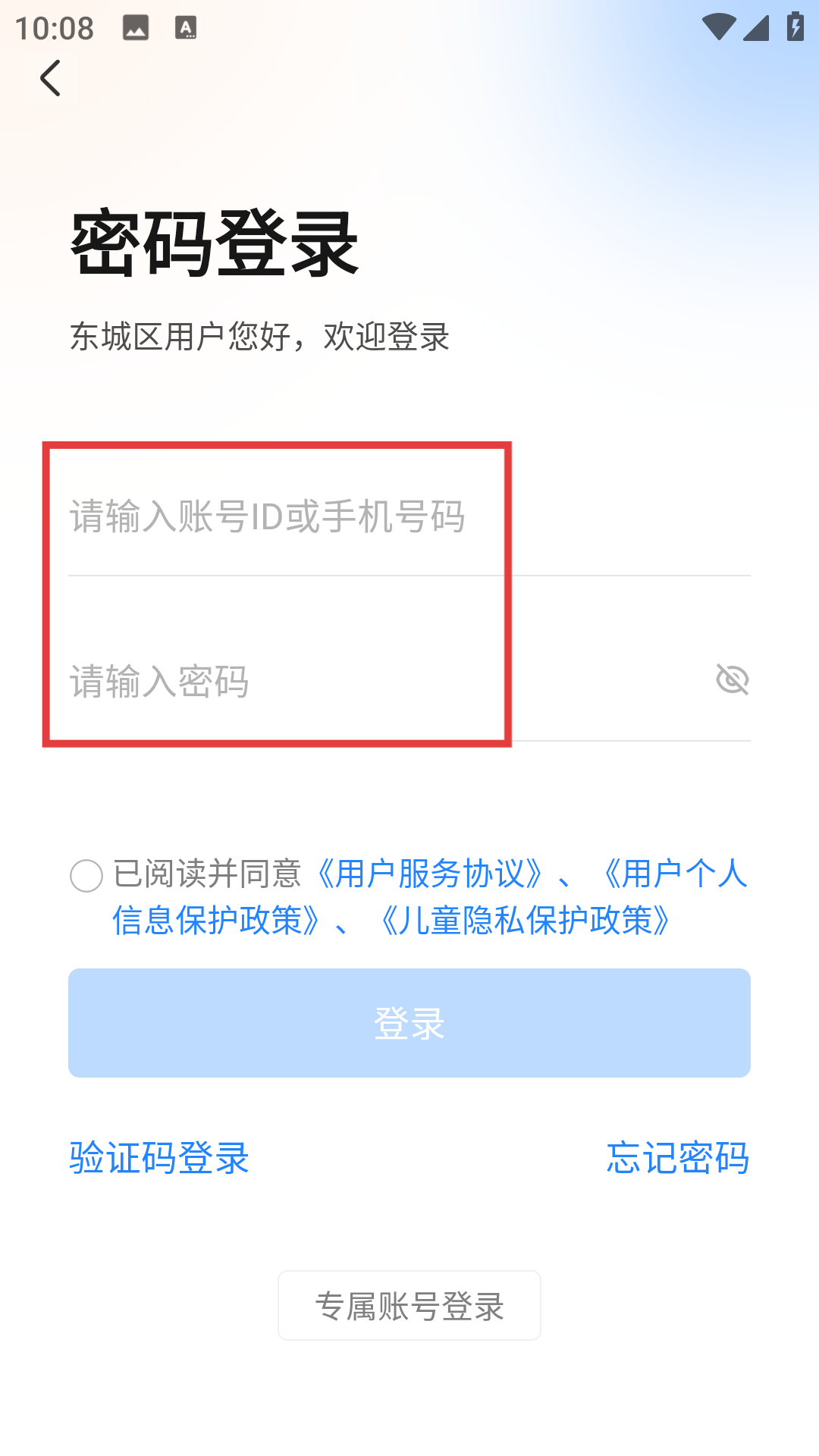 3、在密码登录页面输入【账号ID或手机号码】与【密码】。