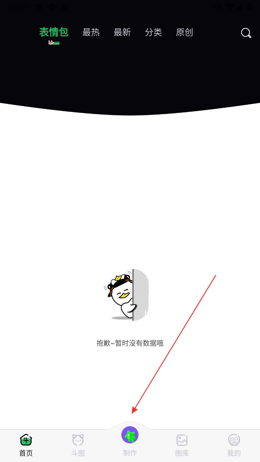 1、在软件首页,点击【制作】按钮开启表情包制作之旅。