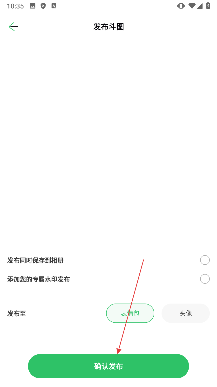 4、在发布斗图界面,选择相关发布设置后,点击【确认发布】按钮,即可完成斗图发布。