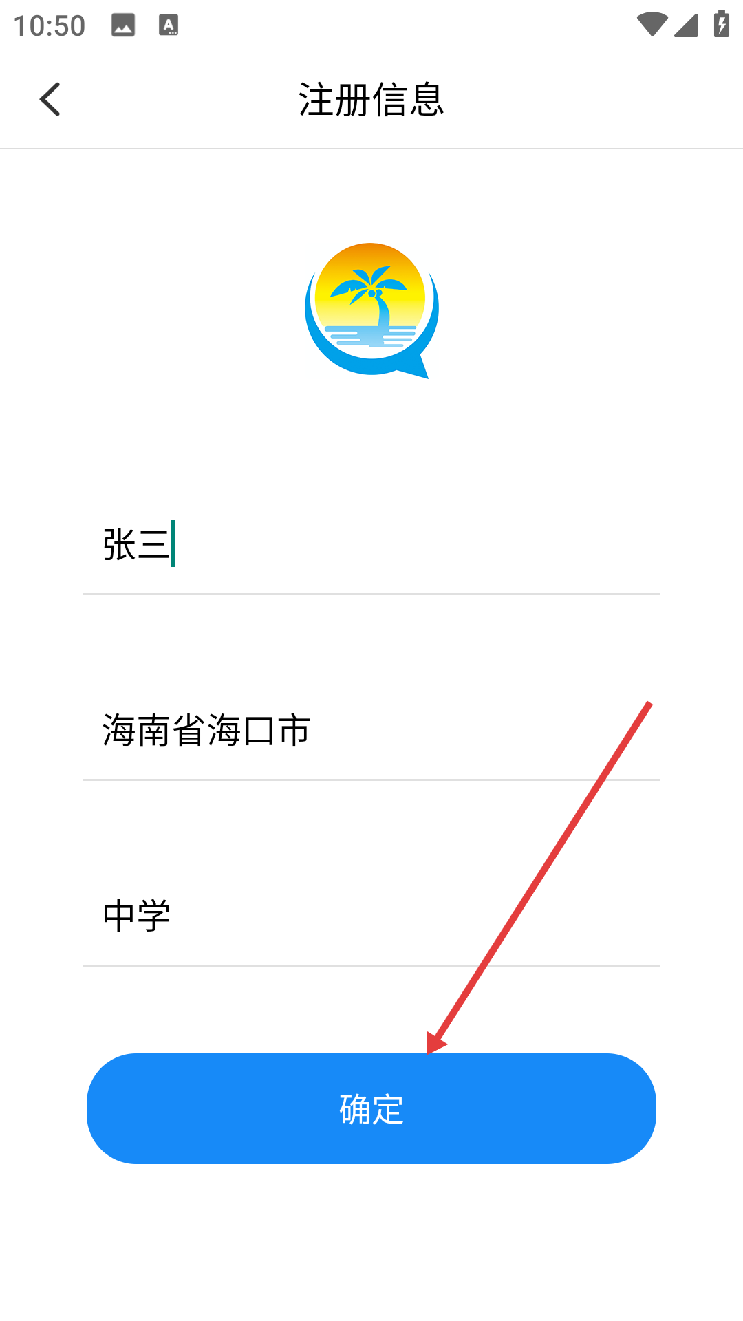 3、确认【注册信息】中的姓名和单位名称填写正确。