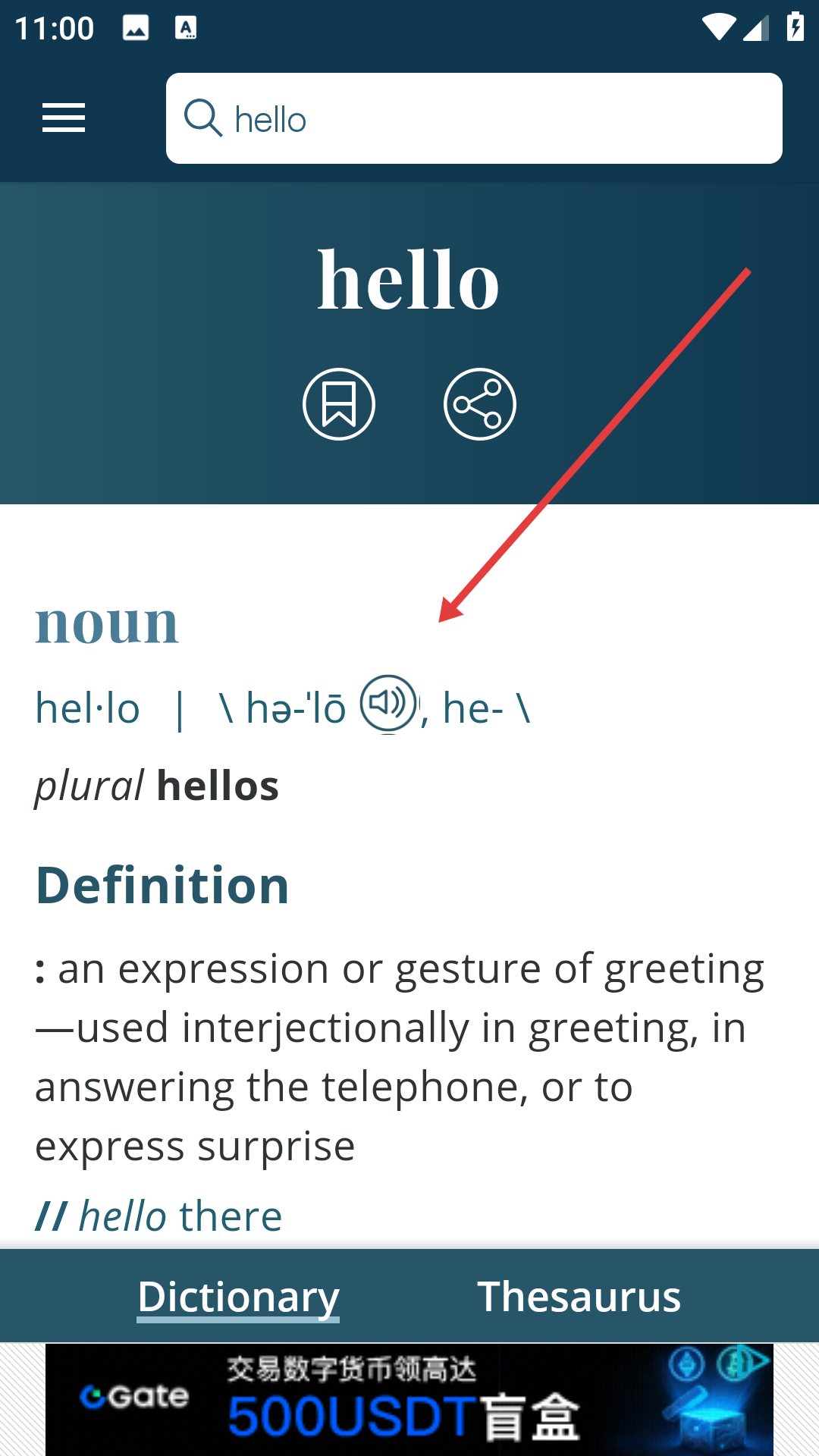 2、在搜索栏中输入要查询的单词,如【hello】。