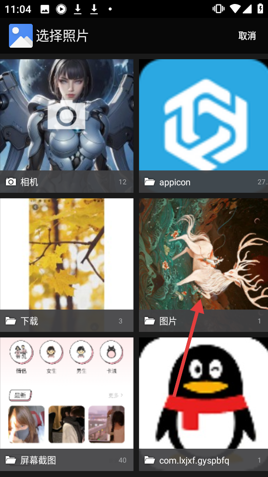 2、在选择照片页面,点击目标图片所在的文件夹,如【图片】文件夹。