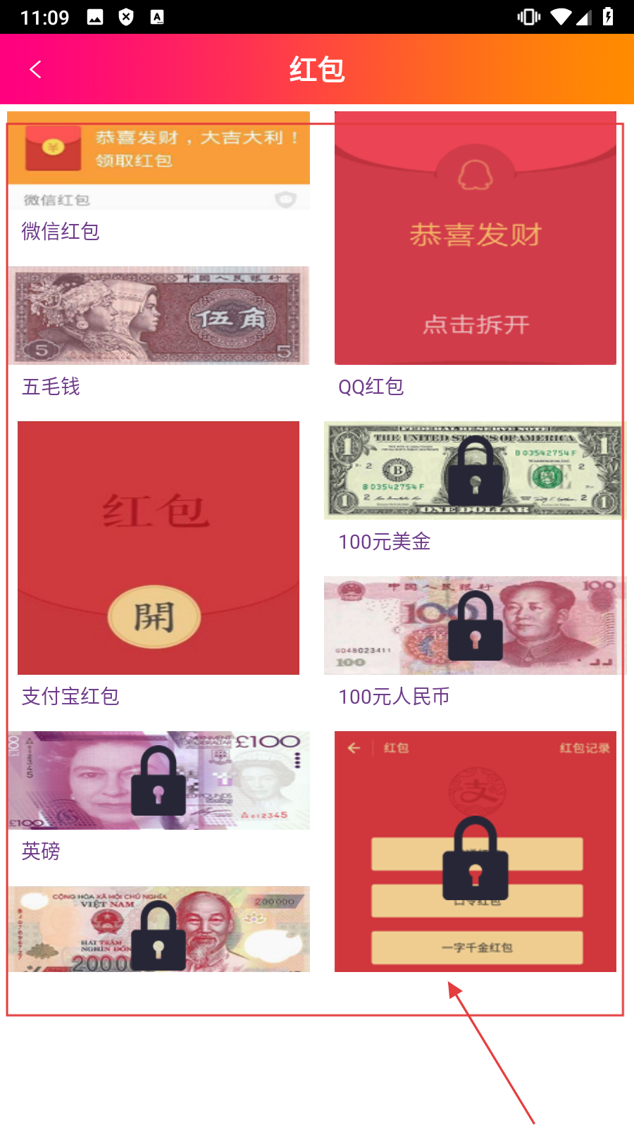 4、进入整蛊界面,可选择【微信红包、QQ红包等红包】类型,享受红包整蛊乐趣。