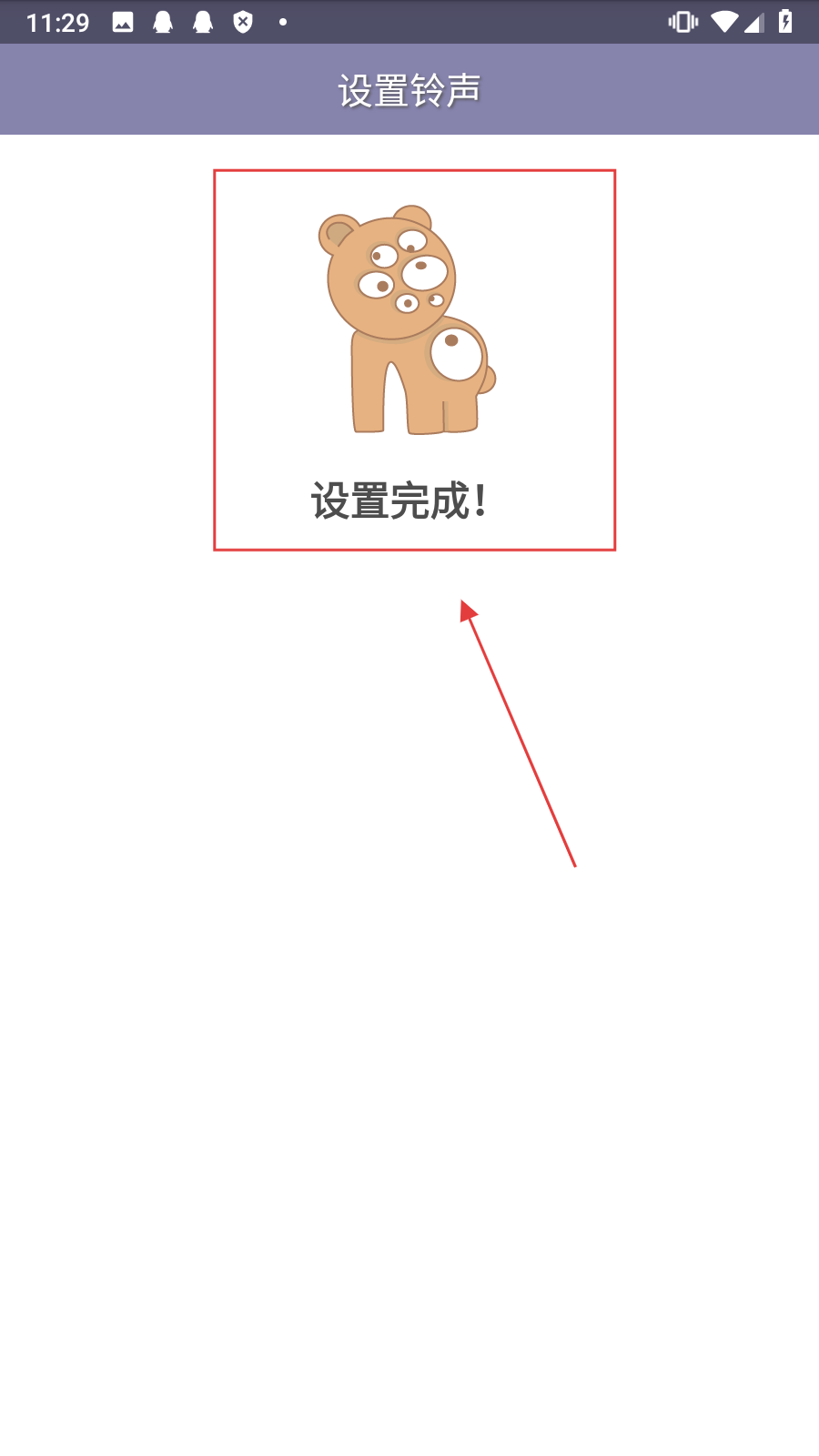 2、完成屁声铃声设置后,可看到【设置完成提示】,,享受个性化屁声提醒。