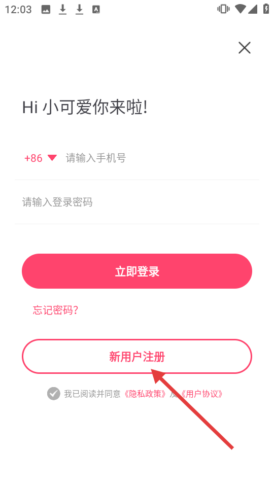 3、在登录界面,点击【新用户注册】进入注册页面。