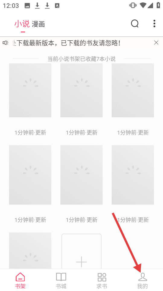 1、在书架页面,点击右下角【我的】进入个人页面。