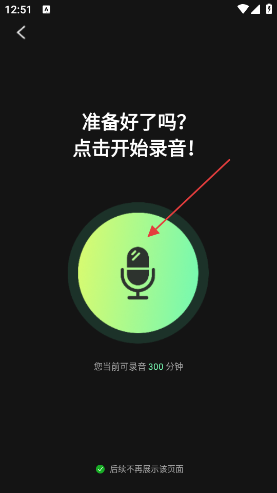 2、在音视频转文字页面点击【开始录音】选项,进入录音准备页面。