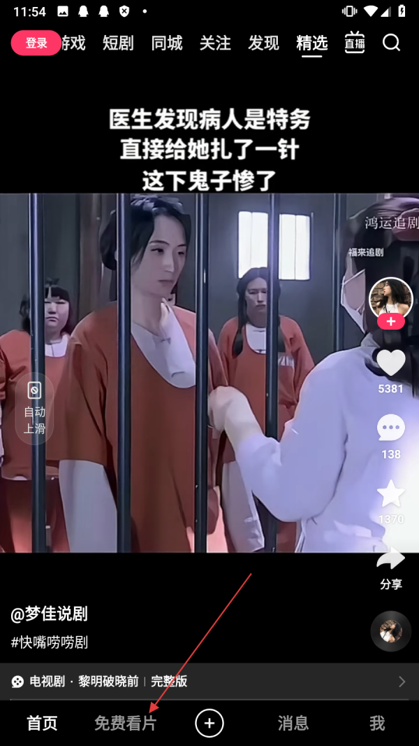 1、在软件首页点击【免费看片】,即可进入放映厅板块。