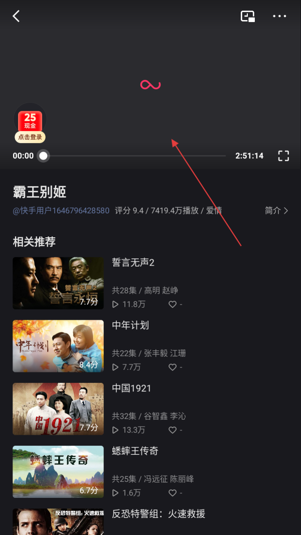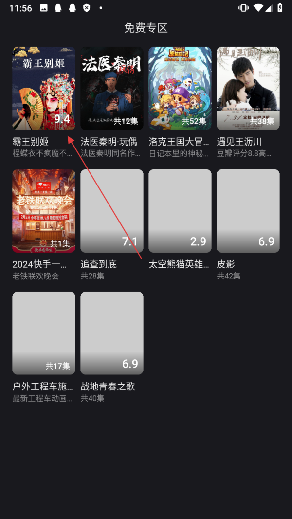 3、在免费专区中,点击【霸王别姬】影片图标,即可进入该影片的播放界面。
