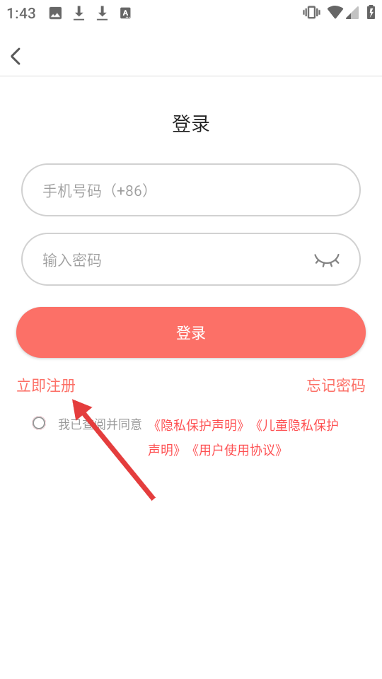 3、在登录界面点击【立即注册】进入注册页面。