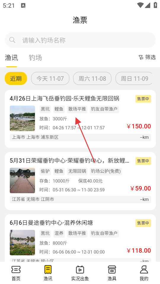 2、在渔讯页面,选择感兴趣的渔场渔票信息,点击进入该渔票详情页面。