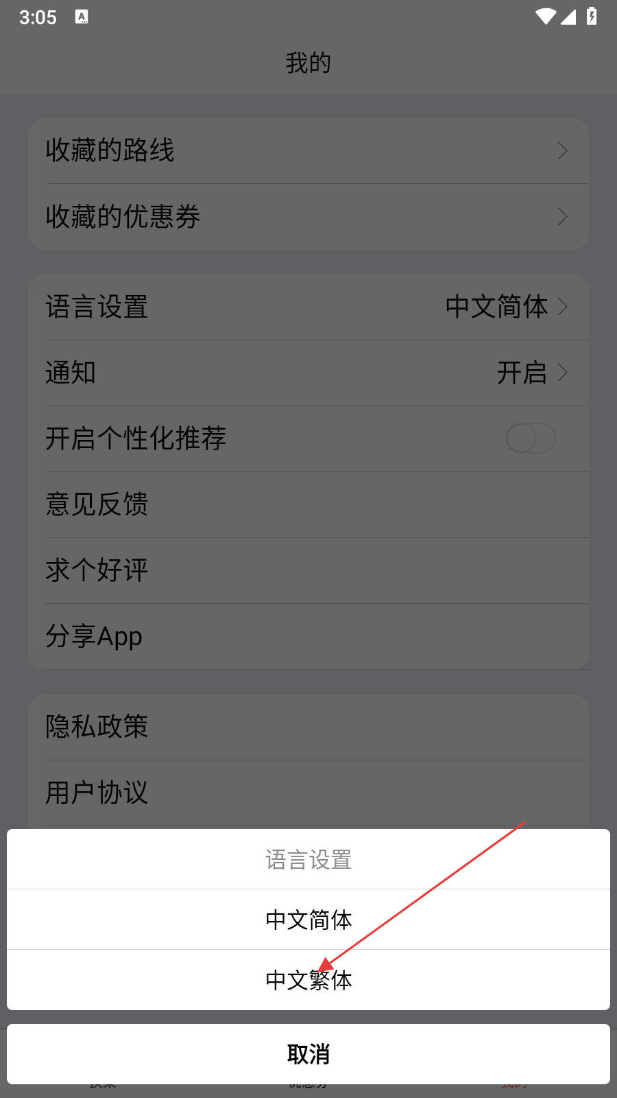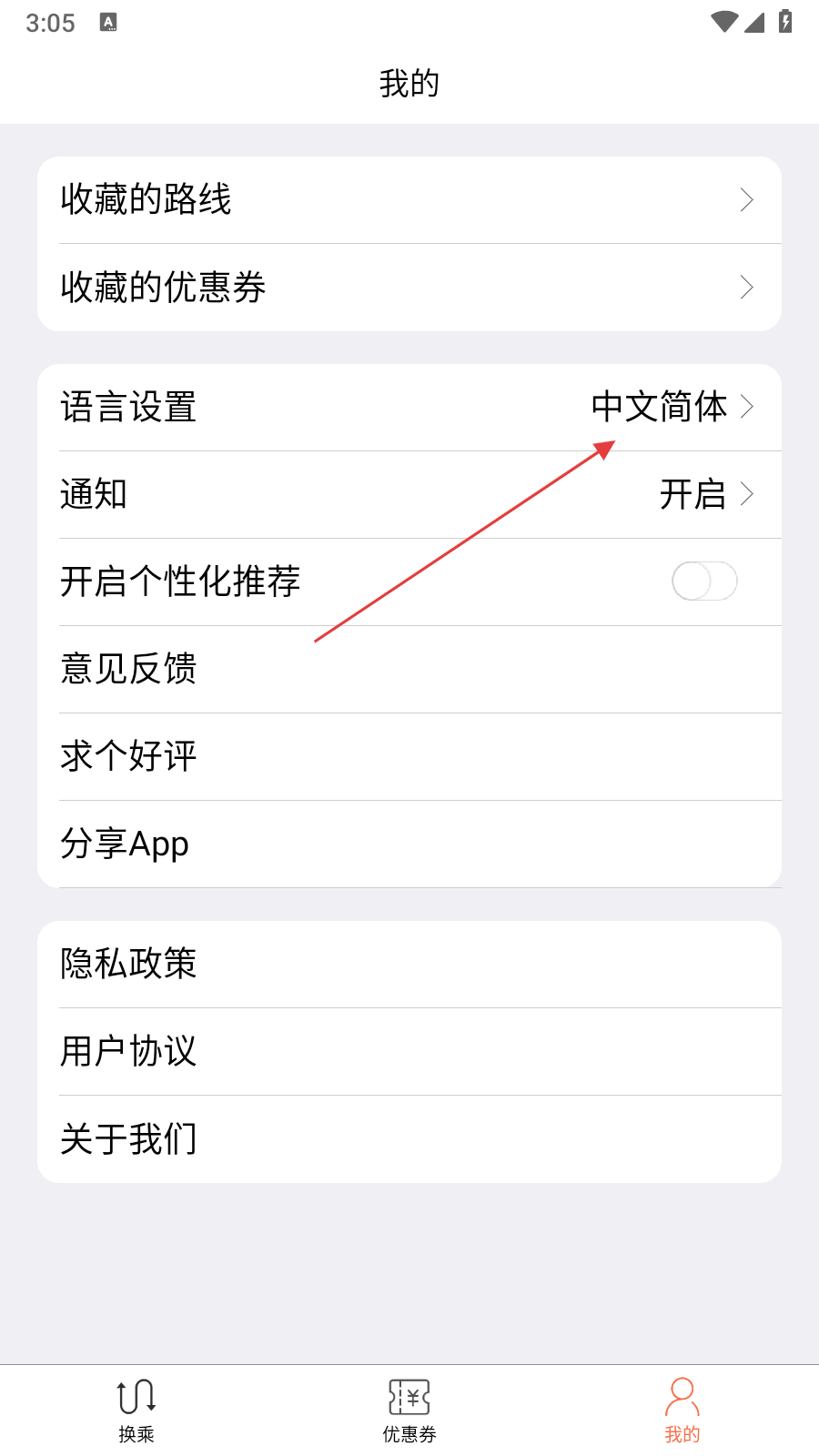 2、在个人中心界面中,找到【语言设置】选项并点击,进入语言选择界面。