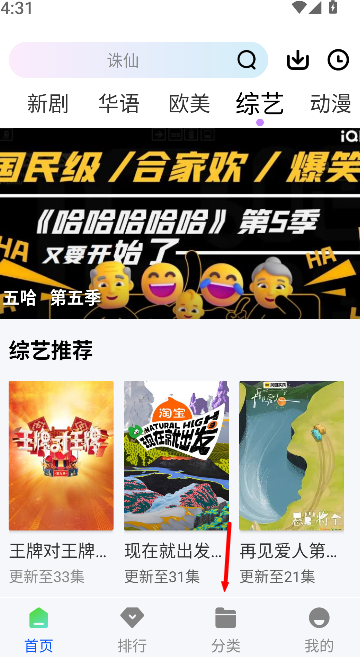 1、打开软件后,点击首页的“分类”选项,浏览电影、电视剧、综艺等不同类型的影视内容。