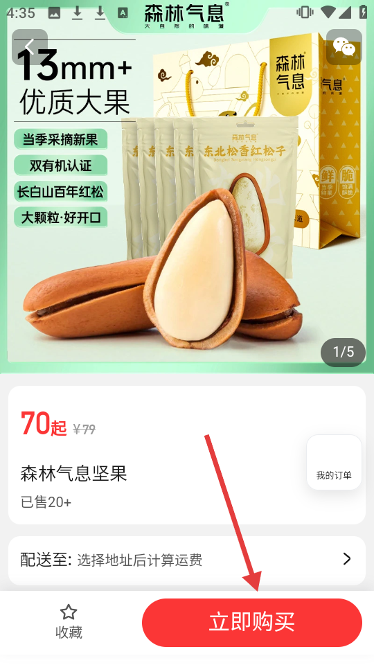 3、在【森林气息坚果】页,点击【立即购买】,进入购买流程。