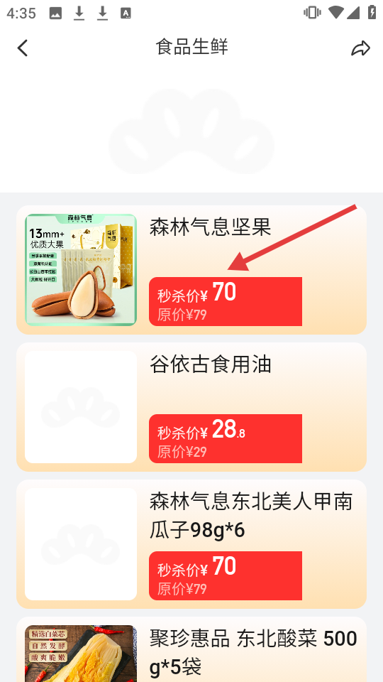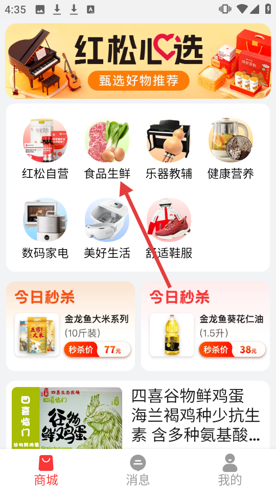 1、点击【食品生鲜】分类,进入食品生鲜商品列表页。