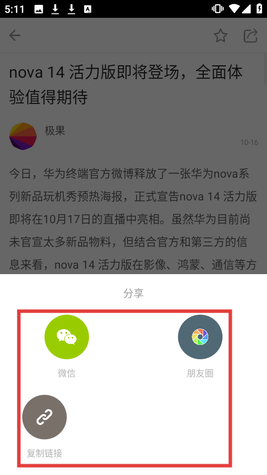 3、在内容详情页,点击右上角【分享】按钮,可打开分享选项。