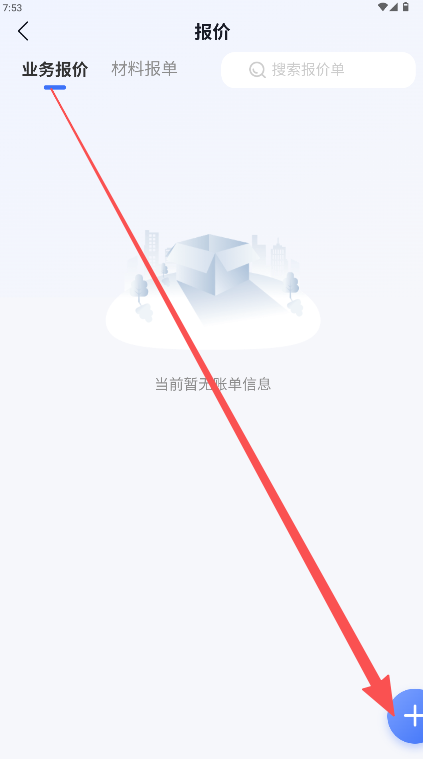 3、在报价页面选择“业务报价”选项卡,点击右下角“+"加号创建报价单。
