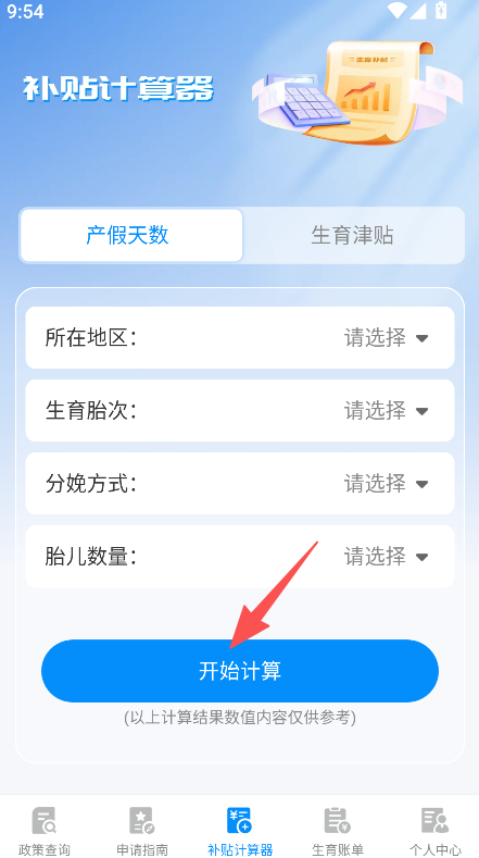 2、计算精准,补贴计算器可多维度选择(地区、胎次等),结果参考性强,用户补贴计算更高效。