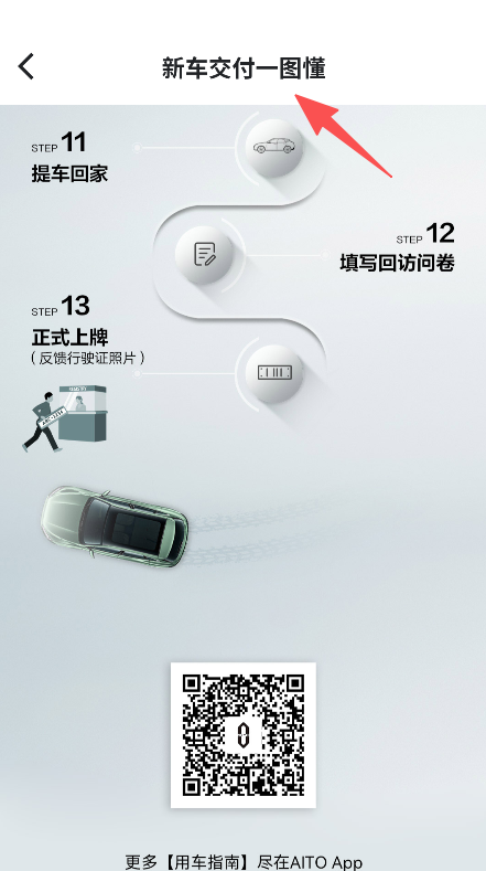 1、进入交付板块,点击新车交付一图懂,了解提车步骤。
